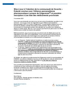 Mise à jour à l’intention de la communauté de Novartis – Recommendation de l’ACMTS et accèss à Zolgensmaavril 2, 2021